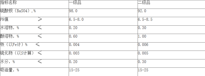 用途: 用作油漆、油墨、塑料、橡膠及蓄電池的原料或填充機(jī),印像紙及銅板紙的表面涂布劑,紡織工業(yè)用的上漿劑。玻璃制品用作澄清劑,能起消泡和增加光澤的作用??勺鳛榉婪派渚€用的防護(hù)壁材。還用于陶瓷、搪瓷、香料和顏料等行業(yè)。也是制造其他鋇鹽的原料。 硫酸鋇因具有化學(xué)惰性強(qiáng),穩(wěn)定性好,耐酸堿,硬度適中,高比重,高白度,能吸收有害射線等優(yōu)點(diǎn),是一種具有保護(hù)環(huán)境功能的材料,因此廣泛用于各種涂料,油墨,醫(yī)藥合成化工,橡膠、造紙、陶瓷、化妝品等領(lǐng)域。精制硫酸鋇廣泛用于各種涂料(水性、油性及粉末涂料),油墨,造紙,工程塑料(家電外殼、建材塑料),電絕緣塑膠、橡膠制品等的填料。蓄電池的陰極膨脹棒,還可用于制造陶瓷、搪瓷的釉面材料等.。沉淀硫酸鋇BaSO4可作為白色涂料,亦可作填充劑用于橡膠與造紙,可增加其重量和光滑程度。沉淀硫酸鋇在橡膠、塑料、造紙、油漆、油墨、涂料等行業(yè)用作填料、增光劑、加重劑。